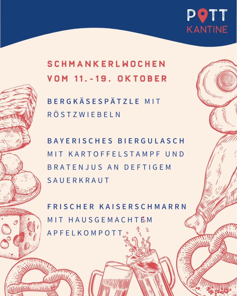 Zünftig und deftig, aber dafür ohne Kotzhügel oder Maßpreise in der Höhe eines Kleinwagens: wenn’s bei uns bayerisch wird, dann holen wir nur die guten Seiten des Oktoberfests in den Naturpott: Hax’n, Kässpätzle und n schönes, bezahlbares Helles vom Fass erwarten euch während unserer ersten Spezialwochen in diesem Herbst in der POTTkantine.