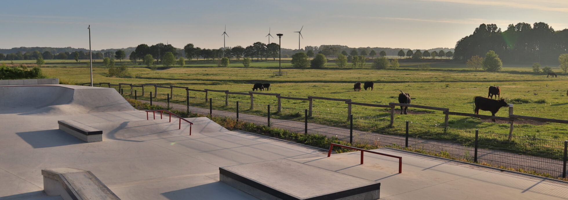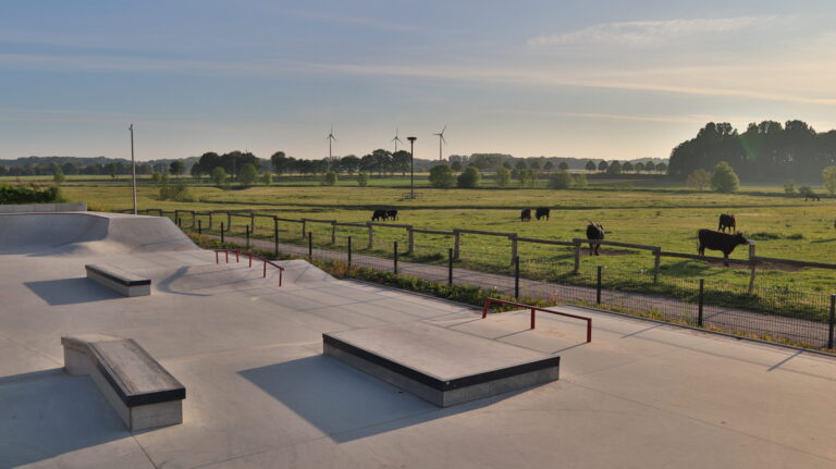 Skatepark Olfen mit Weitblick in die Steveraue.